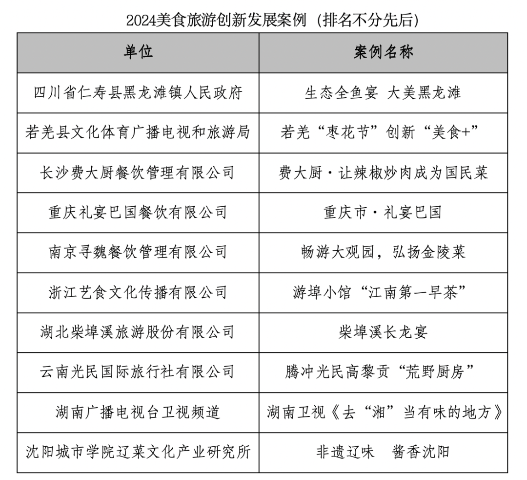 大会发布了“2024美食旅游融合开展案例”与“2024美食旅游创新开展案例”名单。